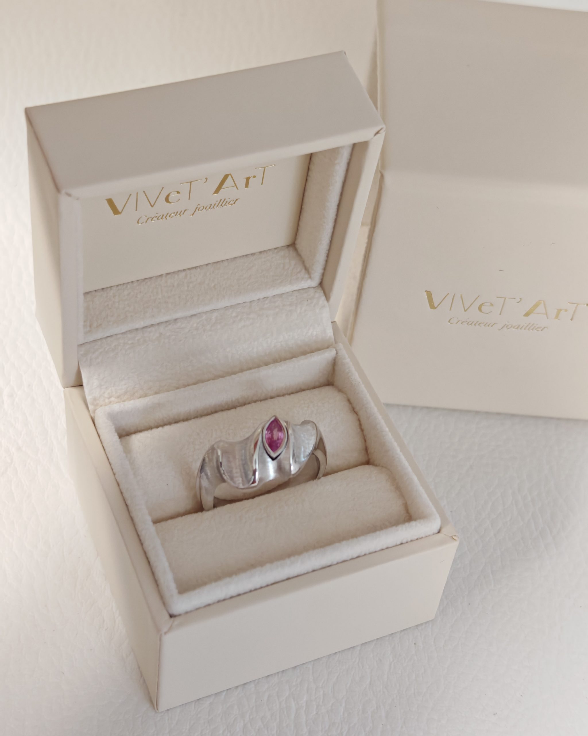 Chaque création « Vivet’Art » est fabriquée à la main. Le poids du bijou est donné à titre indicatif. Il peut varier selon la taille du doigt. Les prix pourront faire l’objet d’une révision en fonction de l’évolution du cours des matières premières.